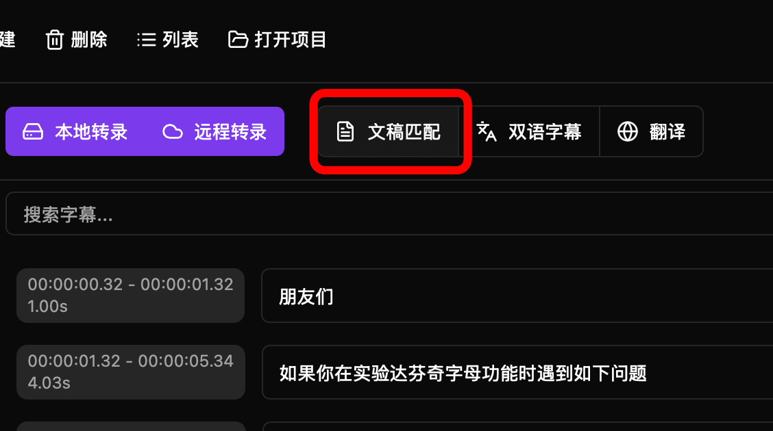 如果你已经有文字稿了,强烈推荐你使用文稿匹配功能,可以使用文稿快速纠错字幕。
