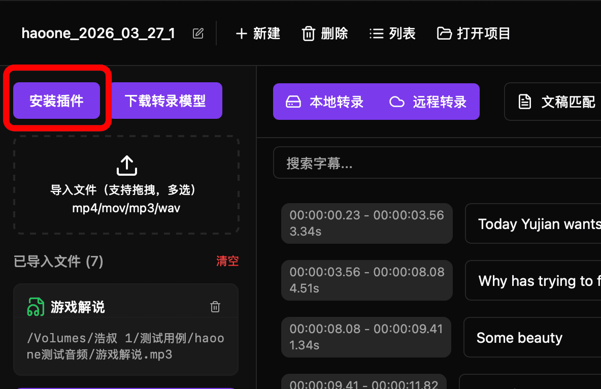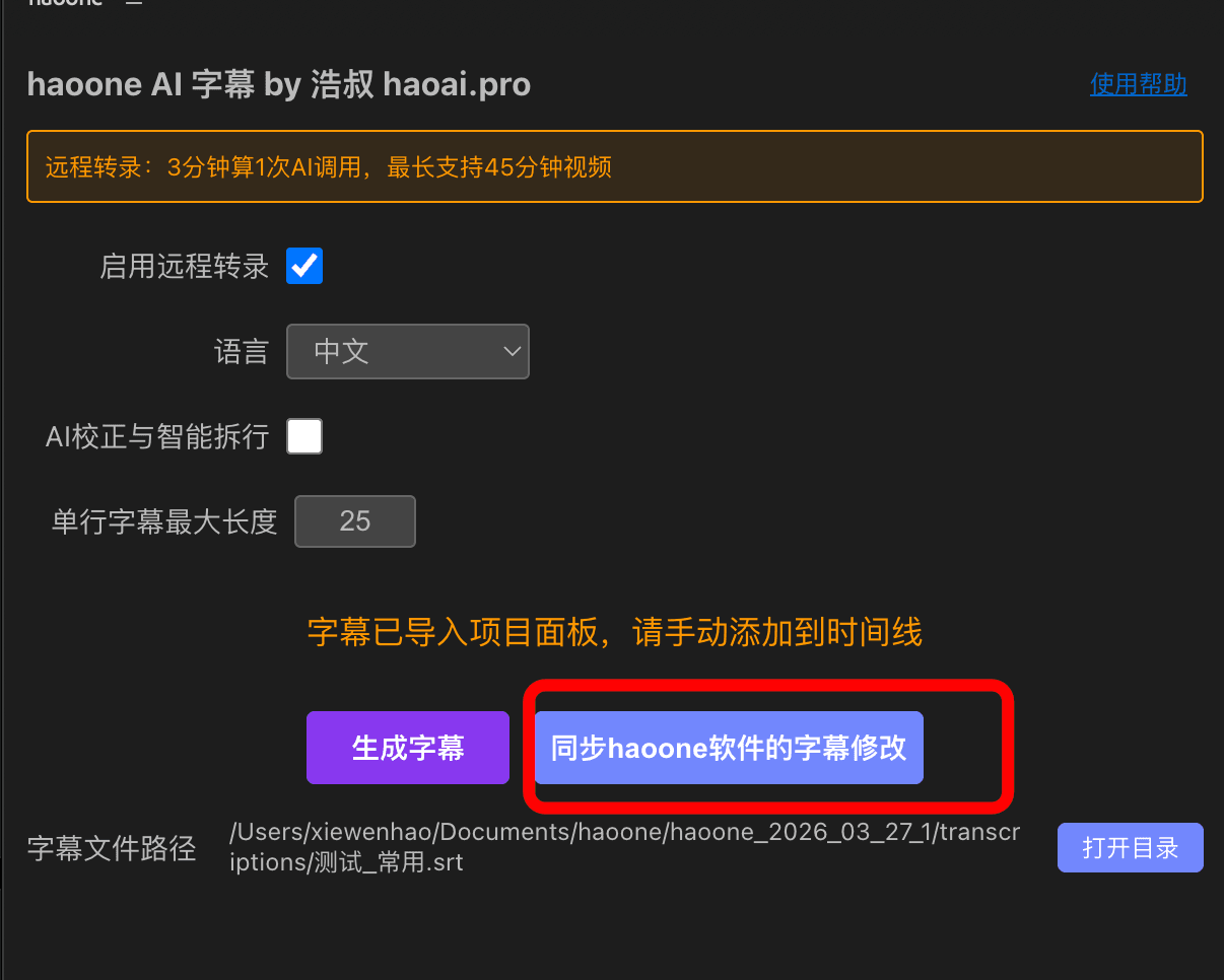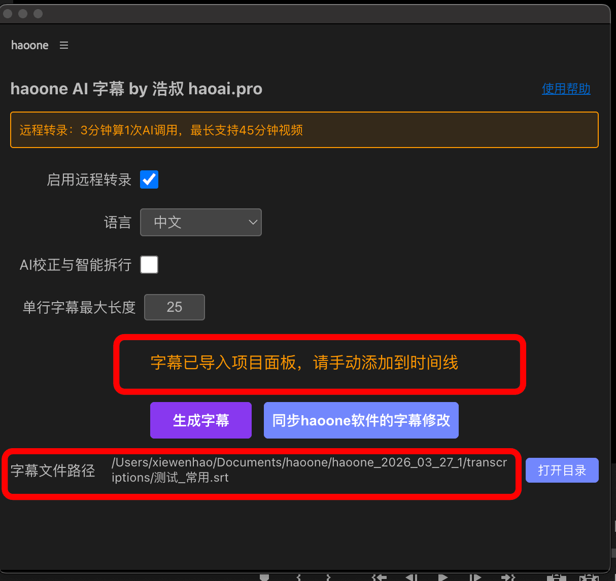 强烈建议你打开 haoone 修改字幕,可以执行文稿匹配、翻译等操作。