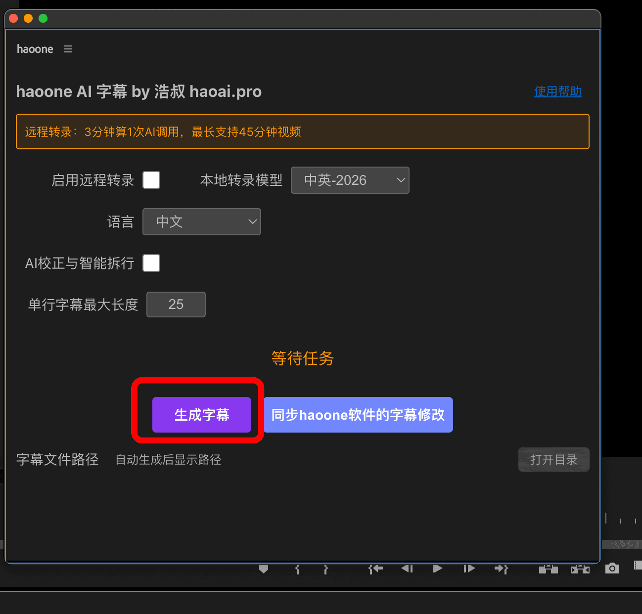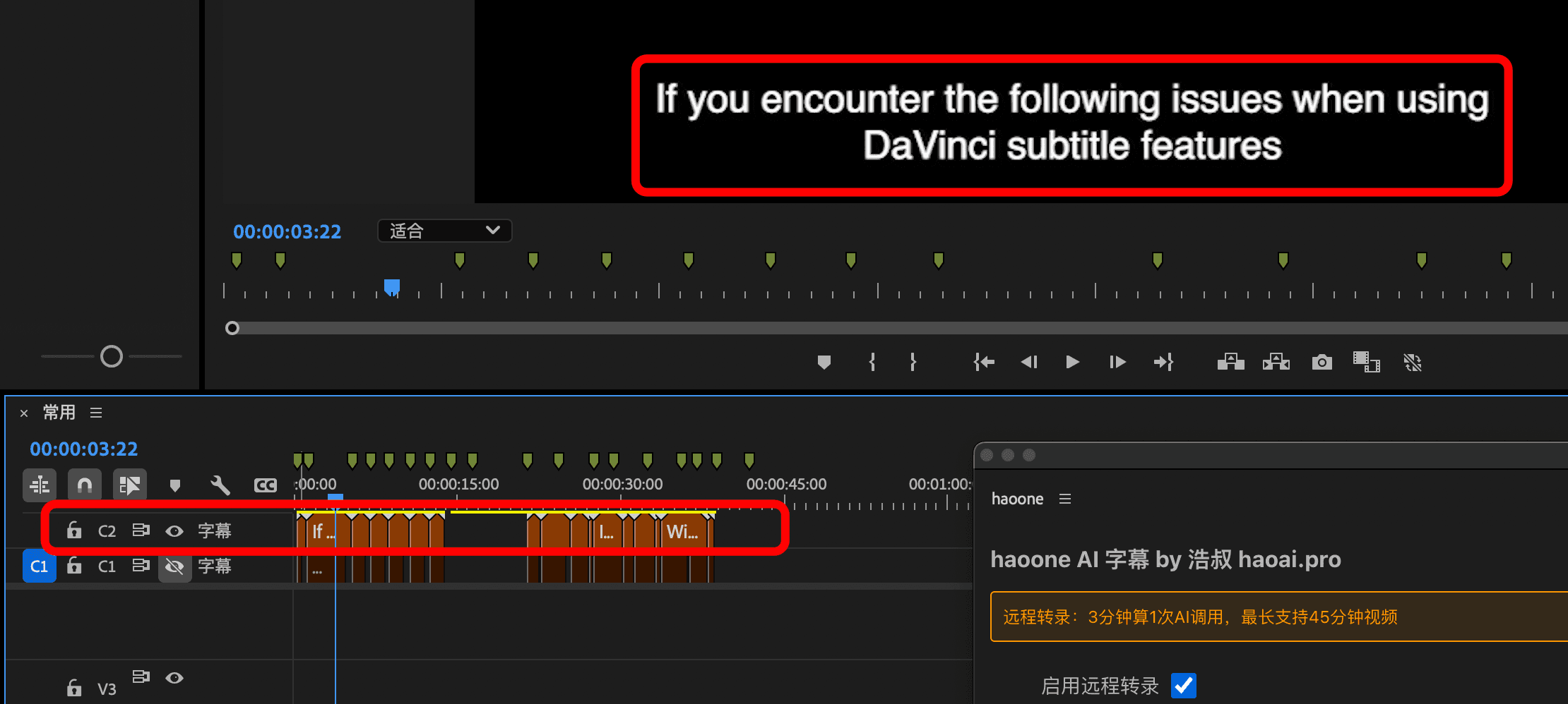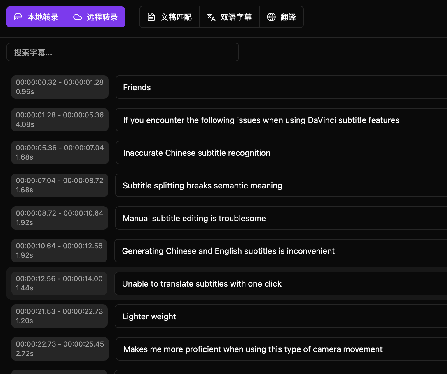 强烈建议你打开 haoone 修改字幕,可以执行文稿匹配、翻译等操作。