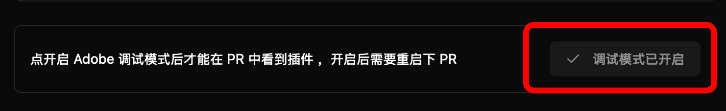 务必确保开启了 pr 的调试模式,不然在 pr 中看不到插件。